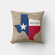 Personalise your Texas family's name on this state logo pillow. The burlap is a pattern, not the material. Available in different sizes.