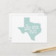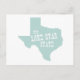 Featuring the outline silhouette map shape of the big and beautiful state of Texas filled in with a solid light green background and the states nickname of “The Lone Star State” written across the front this postcard is a great idea for sending a personal hand written note to anyone in the Lone Star State.