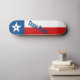 Dd brand skateboard, done in the red, white and blue Lone Star Texas state flag design. Texas Proud in custom blue text is ready to personalise to read what you want.