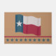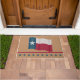 Show your love of Texas with the doormat with the red, white and blue Lone Star Flag on a dark tan background. A bottom border is made with a red strip with a row of blue stars under it. Coordinating products available.