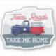 Rustic looking antique truck in the state flag red, white and blue with a star on the door. Text reads" Texas Roads, Take Me Home", a sentiment any Texan can agree with. Great idea for someone who has moved away from Texas or is moving back or is always longing to be back home.