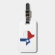 The silhouette shape of the state of Texas with the states flag as the background with the red, white and blue with one big star is a great luggage tag design for the Texan who loves to travel.
