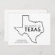 On front of our black and white minimalist moving announcement is an outline map of the state of Texas that has been overlaid with elegant sans serif typography that says: "We moved to TEXAS." There's space for your name and new address on front of the card as well. All text on front and back of this change of address notice can be revised easily on the personalisation template.