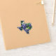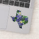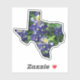 Texas state map outline filled with a photo of Bluebonnet flowers.