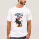 The Texas Bull Rider T-Shirt captures the fearless spirit of the Lone Star State. Featuring a powerful bull rider holding the Texas flag high, this design represents strength, freedom, and true southern pride.