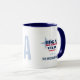 Texas personalised mug. Celebrate Texas's year of statehood in 1845 with a bold typography design featuring the stars and stripes in red, white, and blue, and a light blue star. Personalise this mug with your name on the left and right and in the centre with your monogram initial. Another idea would be to personalise it with your city's name and initial.