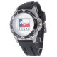 Has heft and feel of expensive stainless steel quartz wrist watches. Solid construction and good looks. Although it had a really top quality rubber strap, I substituted a stainless steel "Shark" style mesh strap, which I think is the most comfortable strap available. Perfect. True colors of original image. Clear, crisp image precisely aligned and spaced.