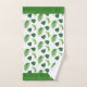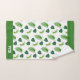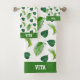 Name and palm leaves on green and white Bath Towel Set. Text can be personalised. Text only on one side.