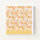 Textile pattern featuring a vibrant orange and gol notebook