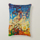 The cushion is small to medium sized. It can be washed. It is well constructed. The material used is pleasant and feels decent quality. It has a very slight plush feel which is good. It is well labelled and its care clearly stated. Theres nothing not to like about it. All in all a good item. The deduction of one star overall is due to long delays in delivery to the UK. It's not clear if this was due to Zazzle or somewhere else in the chain as I did not receive status updates of dispatch or progress. I cannot comment anymore on that other than to say that was our experience but it may not be the same for you. The printing was surprisingly close to what we were expecting. Its an art piece and on material so its hard to assess the precision of printing but it seems close to the original. The soft lines are reproductions of the original. The colour is a fair reflection of the painting. This was printed in the US and it looks like US quality. No issues.