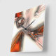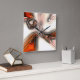 Digital drawing in abstract and rustic parts that look like a some "crater" and other parts resemble ribbons or strips in an intense orange and parts with a dark spot that can cause a perception of shadow or depth, contrasting with a soft pearly beige texture with spots that resemble some soft shine of twisted metallic object or frosted glass.