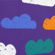Textured Crayon Clouds on Royal Purple Wallpaper
