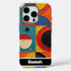 This premium mobile device protector showcases a dynamic, heavily textured impasto oil painting. Bold, raised geometric shapes and abstract forms in striking yellow, blue, red, orange, pink, purple, and black create a vivid 3D tactile surface. The distinct brushstrokes highlight its modern, colourful art style. Personalise this unique smartphone accessory with a name like "Elizabeth"; you can easily remove the name and any other elements you don't like from within the design tool, crafting your perfect bespoke mobile phone protector.