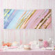 Pink and blue textured background, painted with large brush strokes, decorated with gold foil. Grunge Texture.