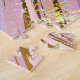 Pink and blue textured background, painted with large brush strokes, decorated with gold foil. Grunge Texture.