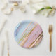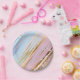 Pink and blue textured background, painted with large brush strokes, decorated with gold foil. Grunge Texture.