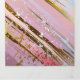 Pink and blue textured background, painted with large brush strokes, decorated with gold foil. Grunge Texture.