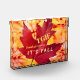 TGIF! Celebrate your love for the spectacular and dramatic fall season! Colourful leaves, chai tea, apple cider doughnuts, crisp mornings, pumpkins, spice and everything nice - it must be fall y'all! It's easy to get in the autumn vibe with this bold and strikingly beautiful fall themed acrylic photo block. The design features a large deep red/rust leaf on a red and yellow tie dye-style background. The text reads "TGIF thank goodness it's fall." The photo block is perfect for all your fall-themed celebrations and family gatherings. Please browse our complete collection of fall-themed greeting cards, home decor, apparel, and unique gift items.