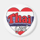 Leuke magneet met een hart afgebeeld met de Thaise vlag erop. Op de tekst staat: Thai girl De achtergrond is in de kleur wit. Leuk om te geven als cadeau of voor jezelf om te laten zien dat je trots bent om Thais te zijn. kleuren: rood, blauw en wit.