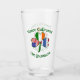 Drinking glass features the flags of Thailand, Ireland and United States of America (USA) are all found in the leaves of this shamrock, created to celebrate Thai holidays, St. Patrick's Day and 4th of July. Above the shamrock, the words THREE CULTURES. Below, the words ONE YOURNAME. Words are in dark green, Celtic style, circular letters. Add your name in the proper spot for a personalised touch. Add someone else's name for a customised gift.