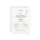 Stylish destination wedding invitation in gold and white tones for couples getting married abroad in Thailand. With motif inspired by buddhism symbols and lucky white Thai elephants. A very pretty design, easy to customise with your wedding details.