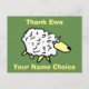 Say "Thank Ewe" with this fun cartoon illustration of a ewe. Great thank you card for a farmer or sheep owner, or just someone who likes sheep.