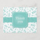 This card is cool way to help you say, "Thank you for coming to my 100th birthday.” There are text templates to easily personalize the words in the center front. This design is a teal and white random number pattern with the teal milestone number 100 repeated in varied sizes and angles over a white background. There is a ticket shape in the center for your text.