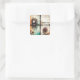 A whimsical character with large eyes and spiky hair occupies the top left quadrant, while vibrant flowers fill the bottom right. The artwork is divided into four quadrants, with a torn paper effect separating each section and an aged, textured background throughout.
