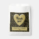 The over-the-hill, numerical design on the front has a black and gold random number pattern with the gold number 60 repeated in varied sizes and angles. There is a gold puffy heart shape in the centre, front with "Thank you.” The lower front has room for, "Thank you for coming to my birthday party. A fun idea for party favours for your 60th birthday party, and for all occasions or celebrations where you are featuring the number sixty; just change the text to match the event.