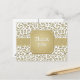 This design is a gold and white random number pattern with the gold milestone number 65 repeated in varied sizes and angles over a white background. There is a ticket shape in the center for your text.