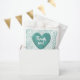 The over-the-hill, numerical design on the front has a teal and white random number pattern with the teal number 70 repeated in varied sizes and angles. There is a teal puffy heart shape in the centre, front with "Thank you.” The lower front has room for, "Thank you for coming to my birthday party. A fun idea for party favours for your 70th birthday party, and for all occasions or celebrations where you are featuring the number seventy; just change the text to match the event.
