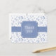 This design is a blue and white random number pattern with the blue milestone number 75 repeated in varied sizes and angles over a white background. There is a ticket shape in the center for your text.