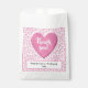 The over-the-hill, numerical design on the front has a pink and white random number pattern with the pink milestone number 80 repeated in varied sizes and angles. There is a pink puffy heart shape in the centre, front with "Thank you.” The lower front has room for, "Thank you for coming to my birthday party. A fun idea for party favours for your 80th birthday party, and for all occasions or celebrations where you are featuring the number eighty; just change the text to match the event.