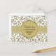 This card is an elegant way to help you say, "Thank you for coming to my 90th birthday", there are text templates for you to easily personalise the words in the centre front. This design is a gold and white number pattern with the number 90 repeated in varied sizes and angles. There is a circle in the centre for your text.