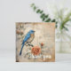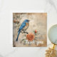 A vibrant blue bird is perched gracefully upon a branch with a blooming rose, presenting an interplay of natural beauty against a background of handwritten script and sepia tones. The artwork blends elements of watercolor and sketching techniques to create an image that has both vintage and lifelike qualities.