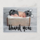 Say Thank You with this Photo Baby Birth Announcement Postcard for a boy or girl. Elke Clarke © Other colours and styles available in our shop at www.zazzle.com/monogramgallery. Black script with the words "thank you" photo overlay design.