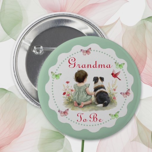Thank you cards for baby shower or new baby gifts. A card thanking guests, friends and family for their love and support. A cute graphic of a baby girl sitting next to her puppy among wildflowers and butterflies in red and sage green.