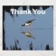 This beautiful appreciation beer label features a photo that captures a lovely black and white wading bird dipping his long beak in the calm blue water. The small bird's reflection can clearly be seen in the mirror-like water. "Thank You" appears in white font across the top of this nature beer label.