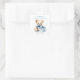 These sweet square stickers feature a lovely watercolor illustration of a cuddly teddy bear with a blue bow tie, sitting next to a matching blue-wrapped gift. The customizable text reads "THANK YOU" and "Thank you beary much for celebrating with us!" making it the perfect seal for party favors, envelopes, treat bags, or gifts at a baby shower, first birthday party, or any event with a gentle bear theme. They are easy to peel and apply, adding a professional and heartwarming finishing touch.