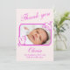 Thank you Birth Announcement photo collage card. Elegant minimalist design with the photo of your newborn girl and a simple text. Personalise it with your baby's photo, name, birth stats or change the background. On the back side you can add a photo and your thank you message.