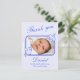 Thank you Birth Announcement photo collage card. Elegant minimalist design with the photo of your newborn boy and a simple text. Personalise it with your baby's photo, name, birth stats or change the background. On the back side you can add your thank you message.