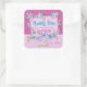 Thank You Birthday Party Floral Pink Polka Dots Square Sticker