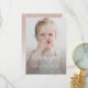 Elegant personalised blush pink kids girly birthday party thank you card with custom photo with black overlay.