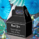 This black and white graduation favour box has a text template you can edit. As shown, the top line is a white script that reads 'Thank You'. The second line can be changed to the graduate's name. The final line is for the class year. All text can be edited or deleted.