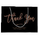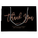 This modern and stylish, black retail shopping bag features the words "thank you" in trendy, faux rose gold look handwritten script typography. Add your business or company name and website or other info for a bag your corporate customers will want to show off.