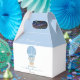 Add a whimsical touch to your baby boy shower with these adorable favour boxes, featuring a sweet watercolor elephant soaring in a soft blue hot air balloon. Perfect for packaging up small treats, candies, or keepsakes, these boxes make every thank-you feel extra special. Personalise them with the name of the mum-to-be and the baby shower date for a thoughtful detail your guests will love. Whether you're going for a storybook, travel, or sky-inspired theme, these boxes are the perfect finishing touch.