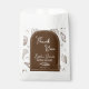 These Thank You Brown Seashells Doodles Favor Bags highlight a warm brown background filled with whimsical seashell, starfish, heart, and sparkle doodles for a rustic coastal feel. Centered on the front is a brown arch outlined with a thin white inner arch that frames your personalized details. Inside the arch, “Thank You” appears at the top, followed by space to add the bride’s name, “Bridal Shower,” a seashell illustration, and the date. These bags are perfect for packaging favors, treats, small gifts, or bridal shower thank-you goodies. All colors and text are fully customizable to match your seaside celebration.