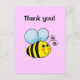 Cute bumble bee thank you card, the background colour and the text are customisable.