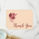 A lovely thank you greeting card, this item features a lovely flower graphic in the upper left hand corner on a peach background. At the bottom to the right is "Thank You" written beautifully in burgundy cursive text. Personalise yours today!