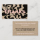 This modern groovy design is in black and blush, with big letters that say Thanks. On the back it adds the words to say thanks for supporting my small business, and there's text for a code to offer a discount.